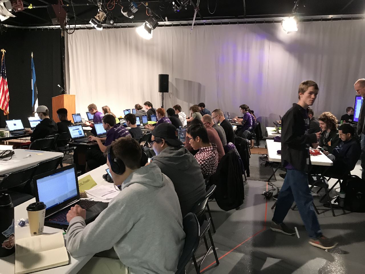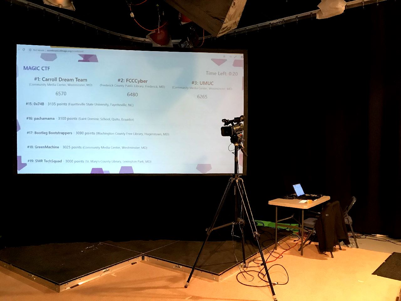 Capture the Flag isn’t just a single event; eleven locations participated in CTF 006, with the main competition being held at the Community Media Center in Westminster, Maryland. Many of these events were located throughout the United States, but students from Järvamaa, Estonia and Quito, Ecuador also participated. The event was also live streamed on YouTube, with views from different participating locations. Snacks and pizza were provided for participants throughout the event, and we were also given a MAGIC sticker and laptop camera cover.