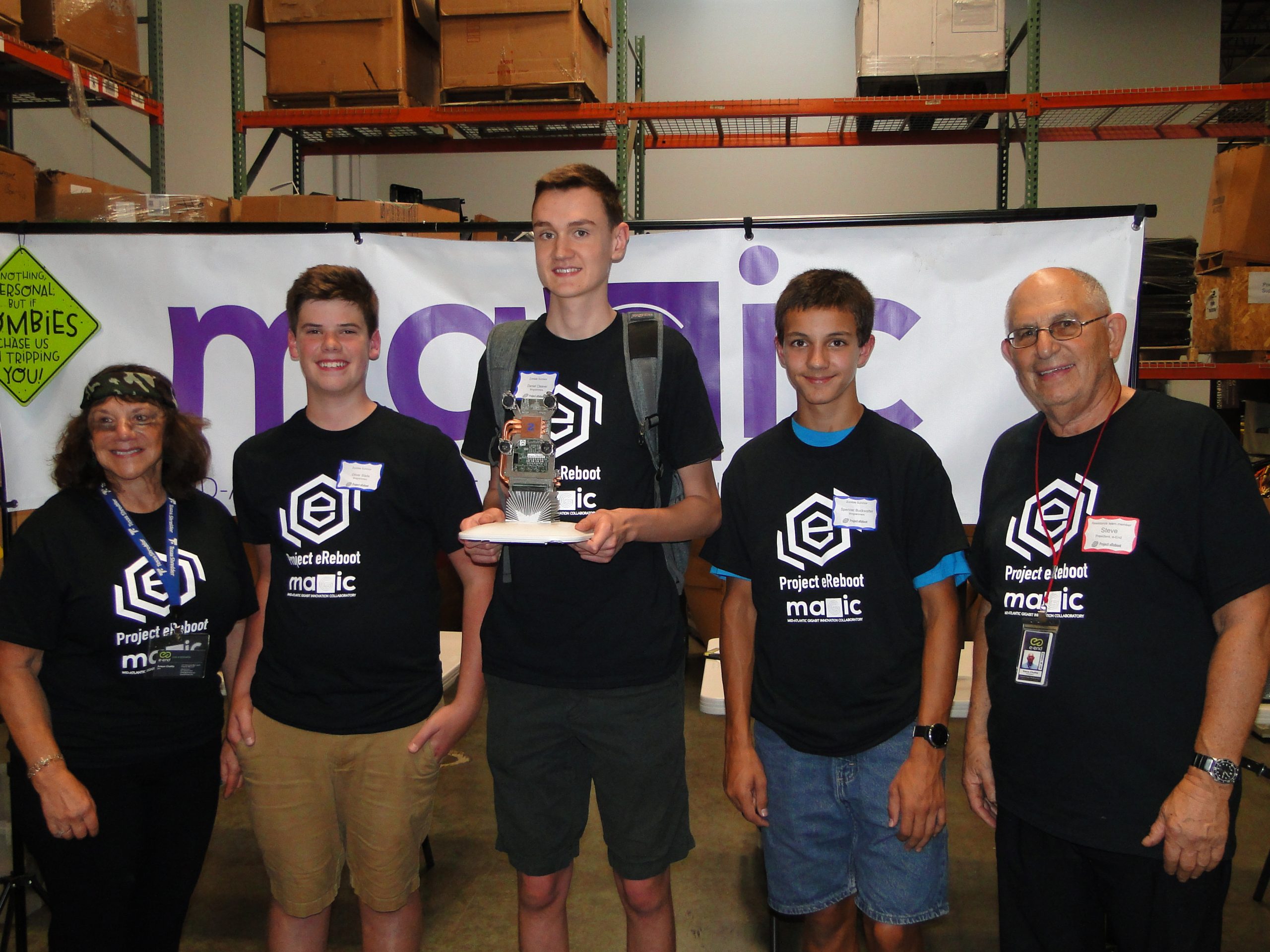 MAGIC is please to report that 15 students competed in the first Project e-Reboot Competition on Saturday, September 15, 2018. Together, e-End and MAGIC created an event unlike any other in the region! Set in a post apocalyptic world, Project e-Reboot challenged teams of high school students to create a functioning computer from recycled components at e-End’s facility in Frederick, MD.